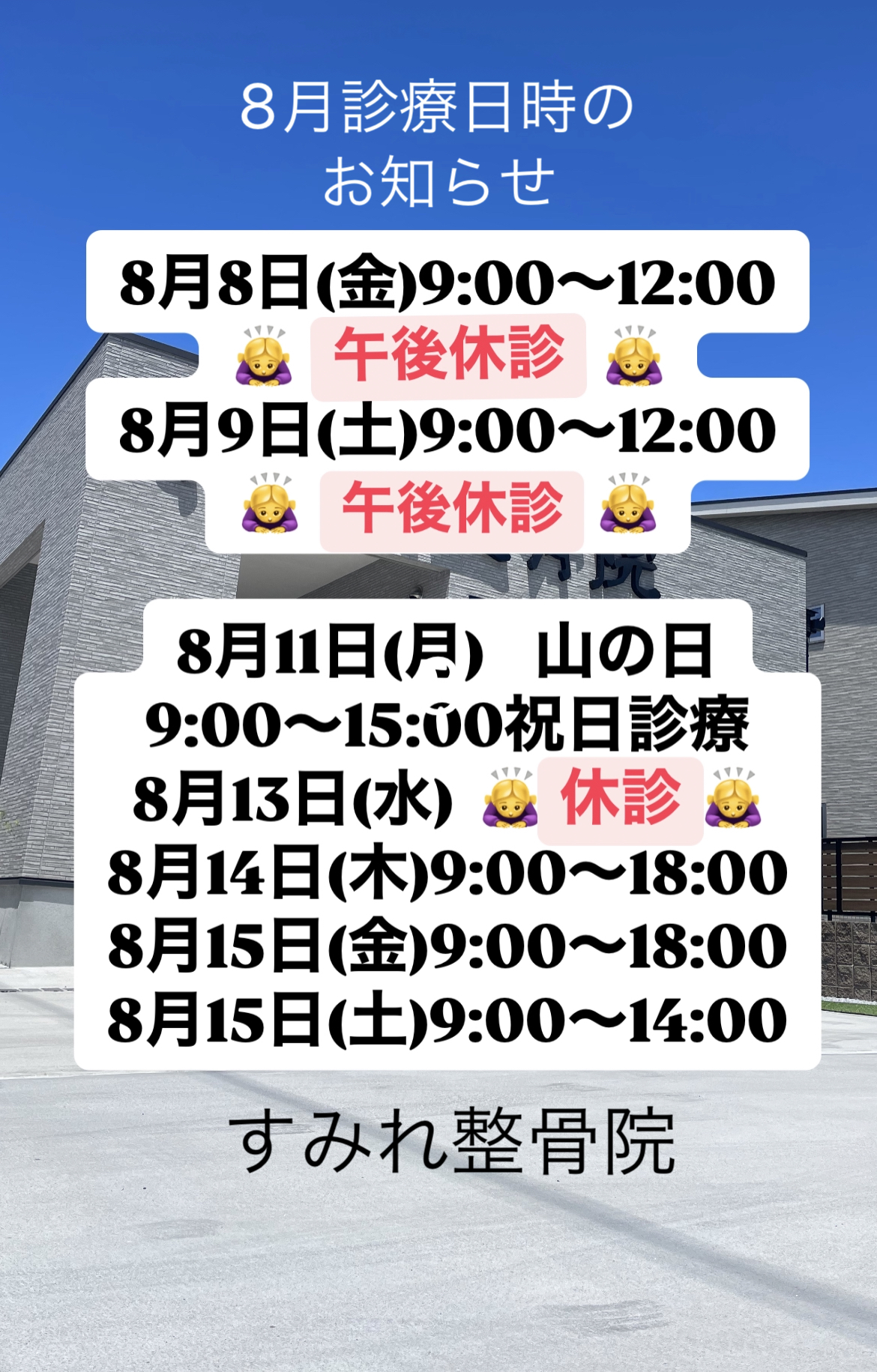 8月の診療日時のお知らせ